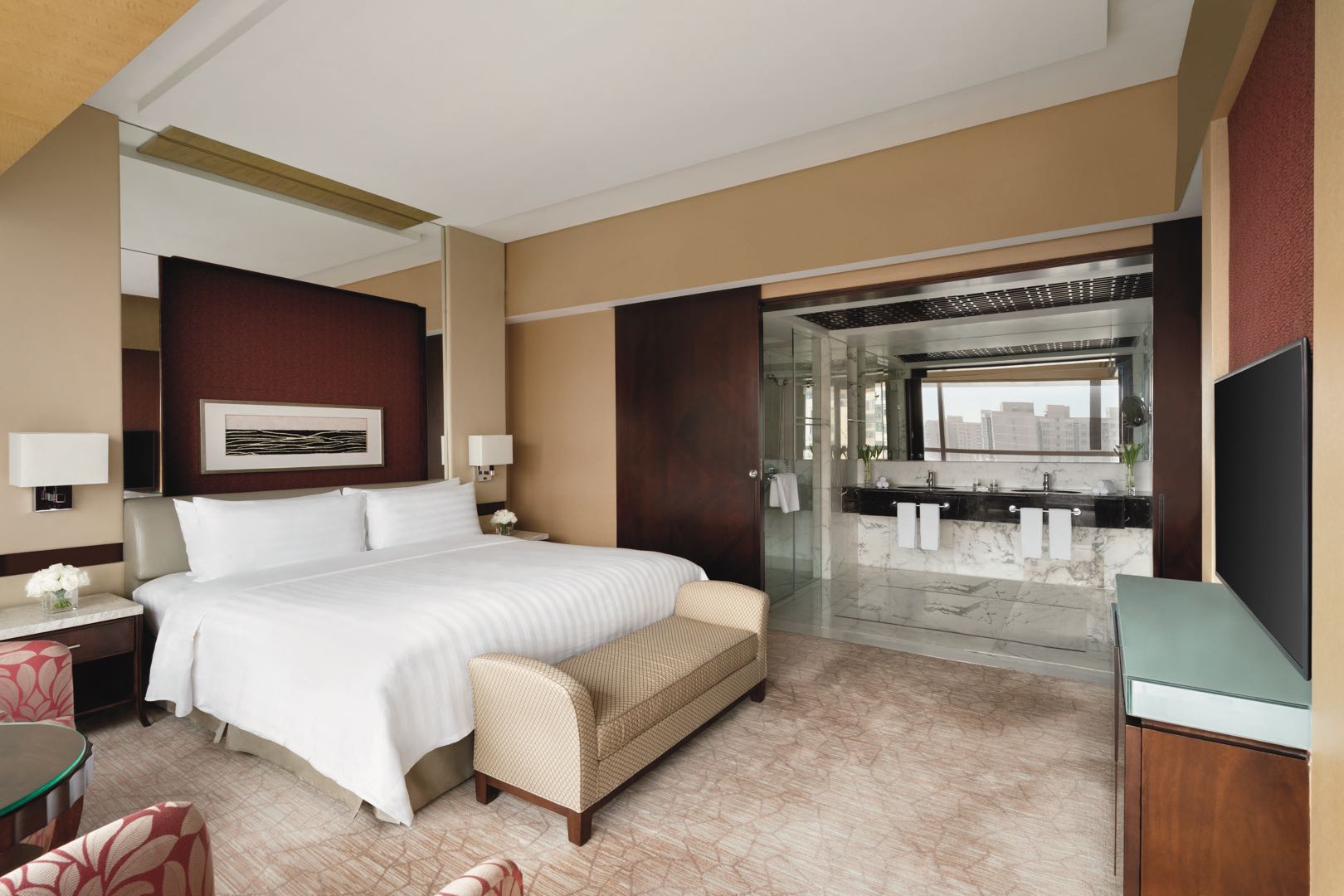 酒店新閣特設(shè)142間50平方米以上,寬敞舒適、豪華典雅的客房和套房。所有房間均配有落地窗、獨(dú)立步入式衣櫥、寬敞開陽的休息區(qū)以及多臺(tái)液晶電視。