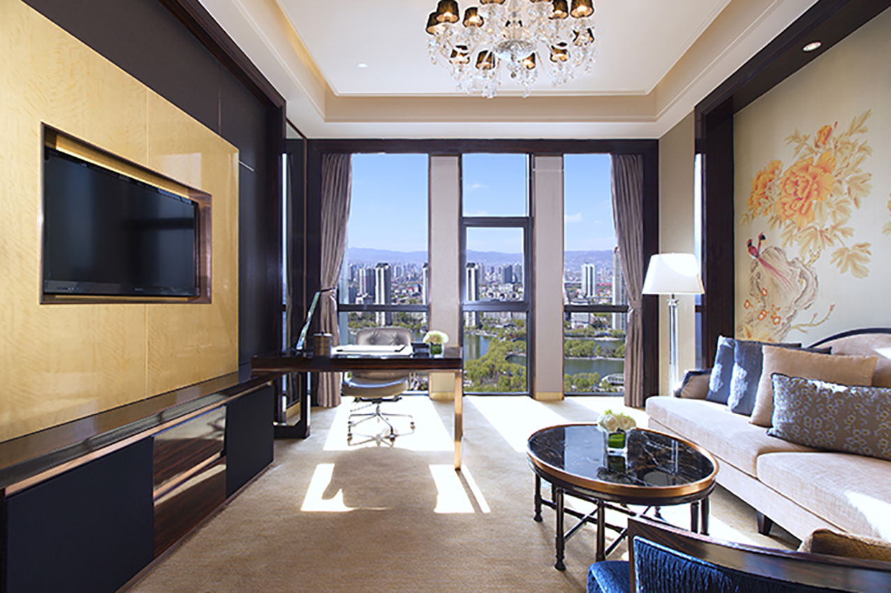 房間內(nèi)的落地玻璃窗打造開闊視野,無與倫比的城市風(fēng)光或秀麗湖景盡收眼底。