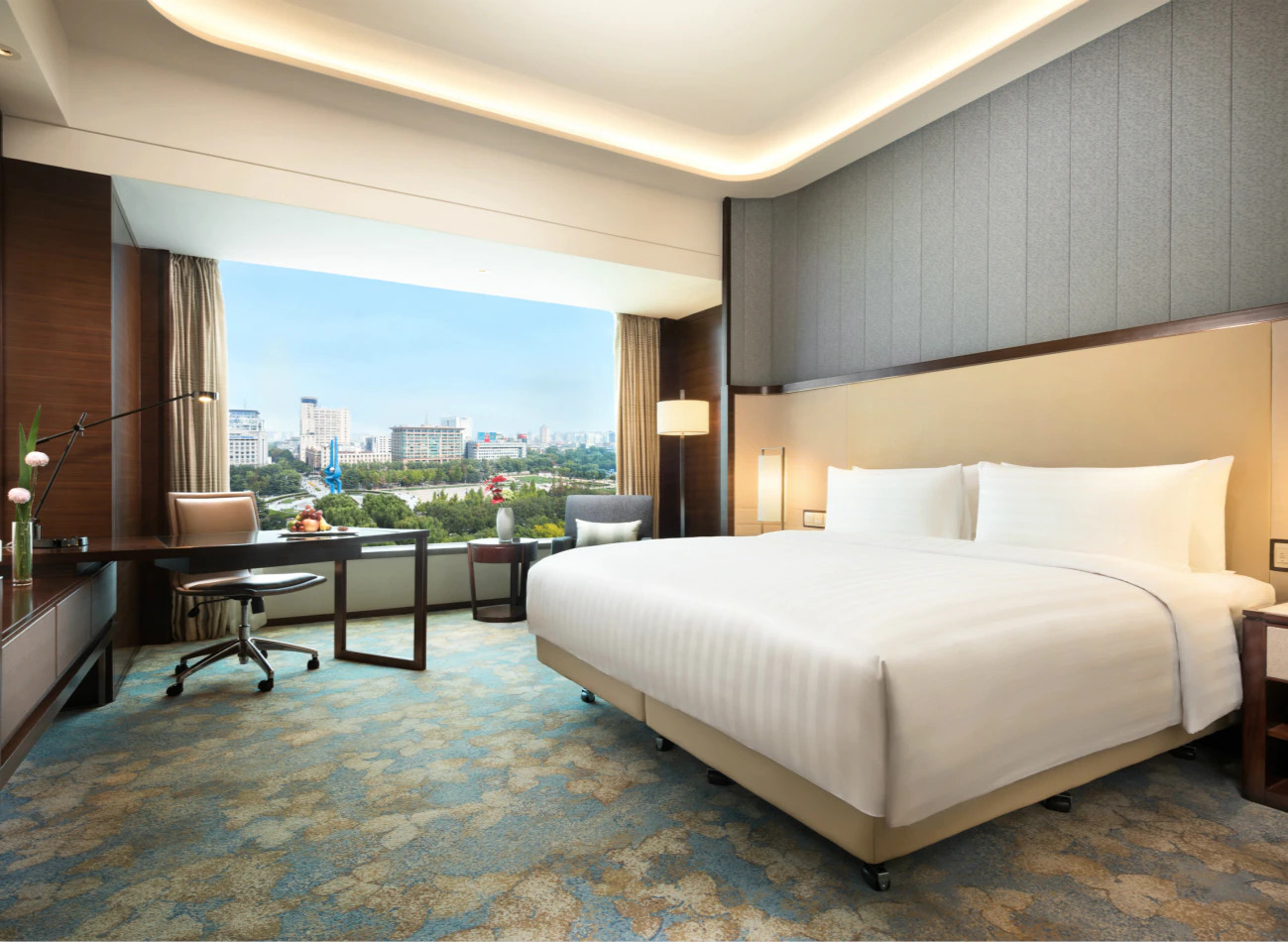 濟南香格里拉擁有364間奢華客房與套房,32間公寓。所有客房均經(jīng)過精心設(shè)計,奢華與便利并存,確保您的每一次入住都輕松高效,完善的室內(nèi)設(shè)施可滿足高品位旅客的需求。