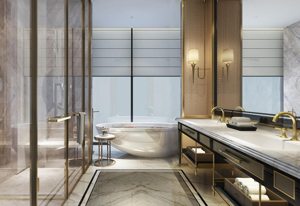 寬敞奢華的浴室設(shè)有獨(dú)立式浴缸及熱帶雨林式淋浴設(shè)施,配合豪華洗浴用品,打造怡人沐浴享受。