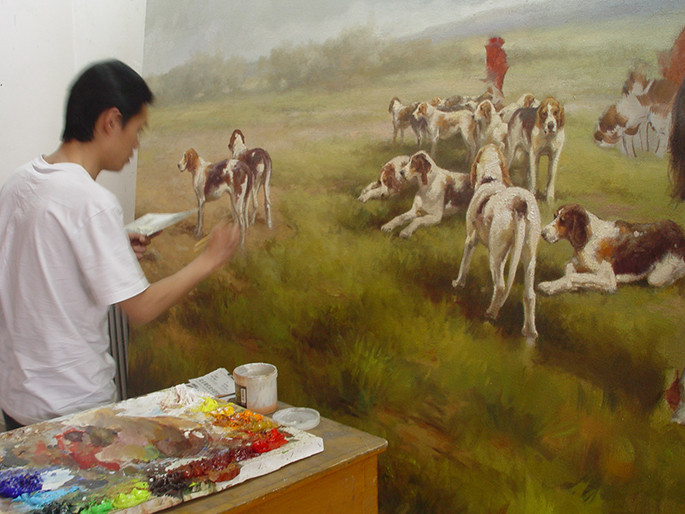壁畫(huà),作為繪畫(huà)的一種,具有繪畫(huà)最一般的規(guī)律,有載體(石、磚、墻、木、絹、紙)、有構(gòu)圖(畫(huà)面安排)、有色彩(顏色)、有造型(形態(tài)設(shè)計(jì))、有表象(表現(xiàn)內(nèi)容)。根據(jù)這些特定條件,壁畫(huà)的制作就有一定的規(guī)律性和技術(shù)規(guī)范。畫(huà)師著色的第一階段,由主稿畫(huà)師按照酒店軟裝設(shè)計(jì)師規(guī)劃的畫(huà)面情節(jié)規(guī)定整個(gè)墻面的總體構(gòu)圖的布局和色調(diào),根據(jù)主題人物和情節(jié)的需要,決定酒店壁畫(huà)色彩調(diào)子的安排。這一工序很重要,它是決定酒店壁畫(huà)色調(diào)氣氛全局的關(guān)鍵,及整個(gè)酒店壁畫(huà)的藝術(shù)效果的綜合。