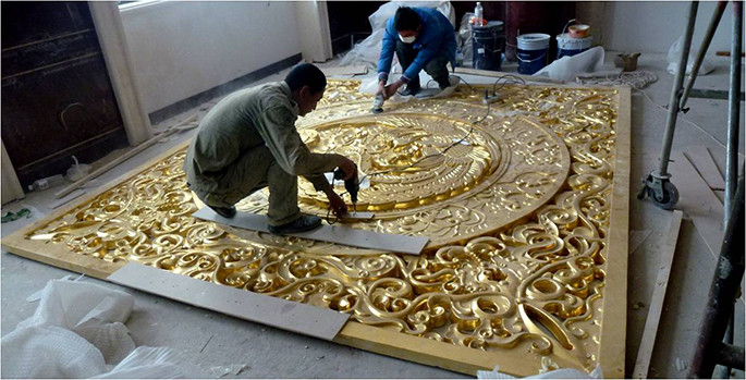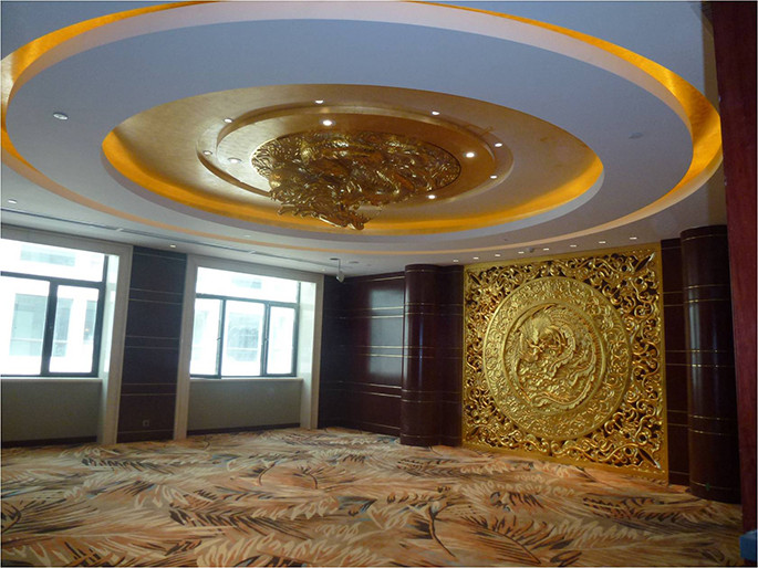 51A設(shè)計機構(gòu)2012年9月承接的河北承德嘉和國際酒店位于承德市雙橋區(qū)迎賓路23號,為五星級度假酒店。51A設(shè)計在尊重酒店管理公司與業(yè)主相關(guān)意向的前提下,對酒店龍鳳餐廳的“鳳”浮雕“龍”圓雕進行了設(shè)計規(guī)劃。51A設(shè)計機構(gòu)規(guī)劃設(shè)計的龍鳳餐廳浮雕及圓雕,為了控制成本,浮雕圓雕的胚體采用玻璃鋼材質(zhì),面層采用真金箔貼金工藝;成品效果金碧輝煌,既完全反映業(yè)主對其龍鳳會所“尊貴唯一”的功能空間定位,又規(guī)避常規(guī)五星級酒店裝飾藝術(shù)品的風(fēng)格所呈現(xiàn)的“千人一面”的特質(zhì),符號性強識別性強,給人留下深刻印象。